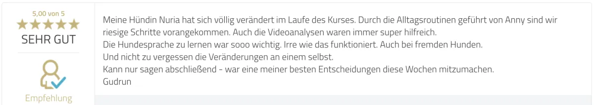 Für 1300€ brutto bekommst du Alles ... Als Gegenleistung für ein bewährtes System, das hunderten von HundebesitzerInnen geholfen hat, genau das zu bekommen, wonach sie sich sehnen: