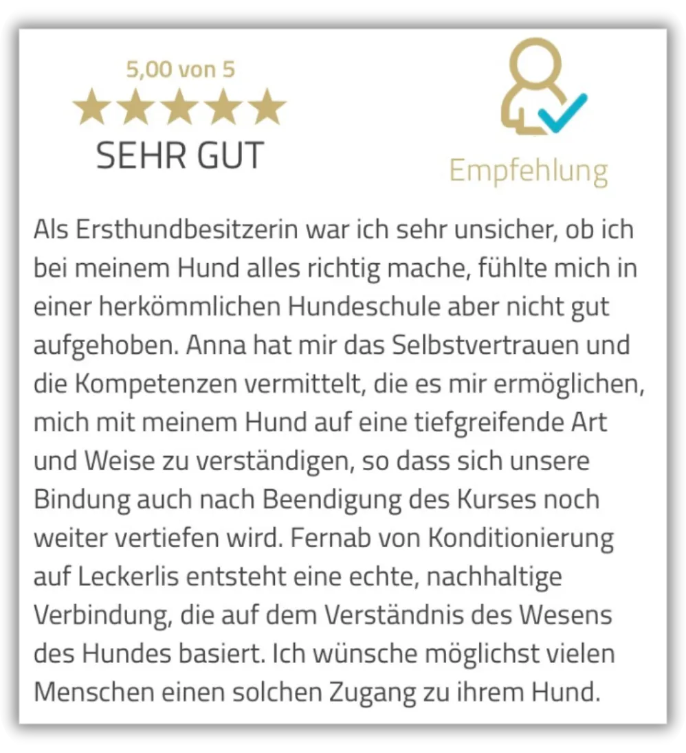 ✅ wird dein Hund souveräner werden gegenüber seiner Umwelt und sich völlig entspannt in deinen Alltag integrieren.