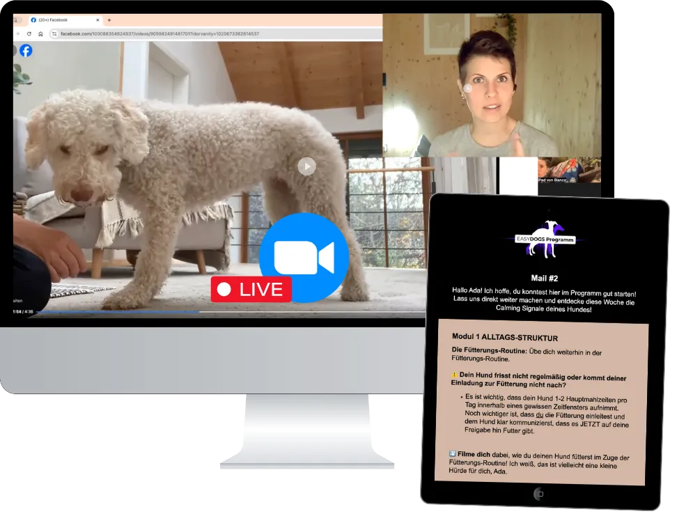 Betreute Facebook-Gruppe: Über die EasyDogs Facebook Gruppe hast du die Möglichkeit, Videos von deinem Hund mit mir zu teilen, die ich mit meinem Experten-Auge analysiere.